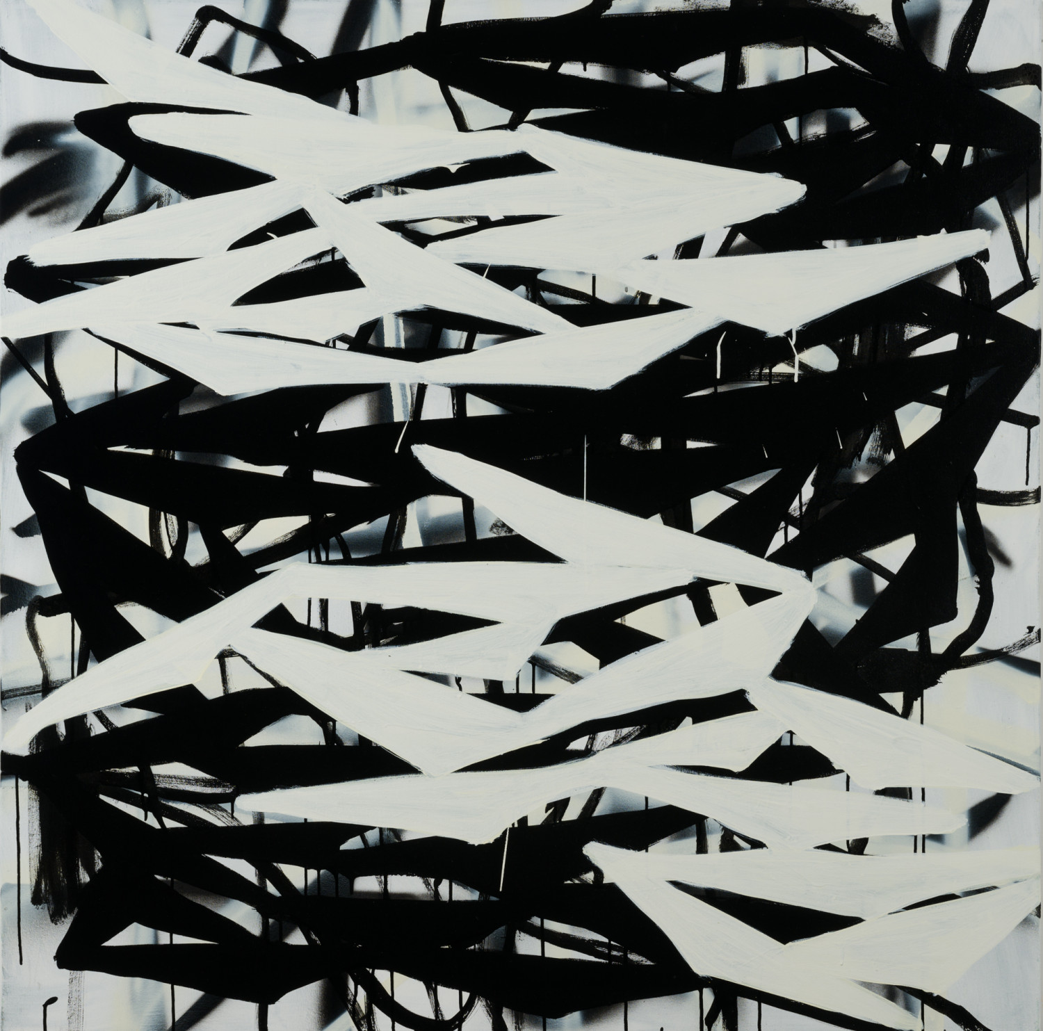 Black Drawing 2, 2023, acrylic and spray paint on canvas, 50" x 50"
