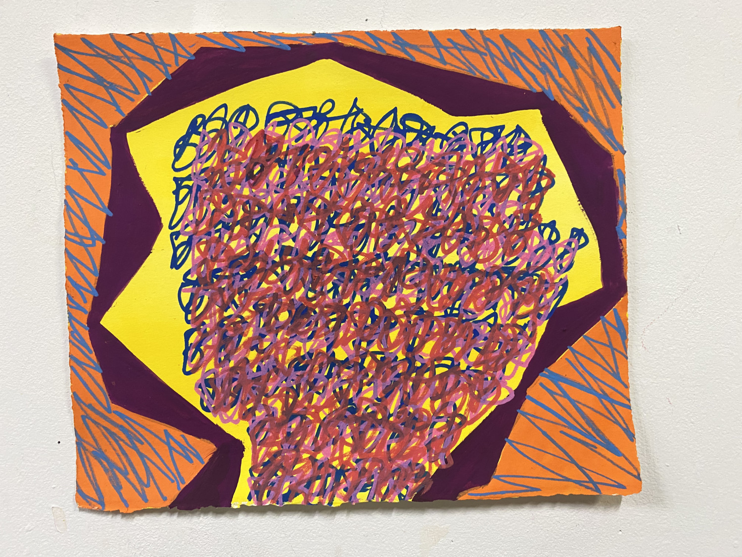 082825.3, 2025, acrylic ink, acryla gouache, acrylic marker on paper, 10" x 12"